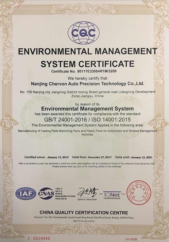 Environmental System Certificate - Automobile